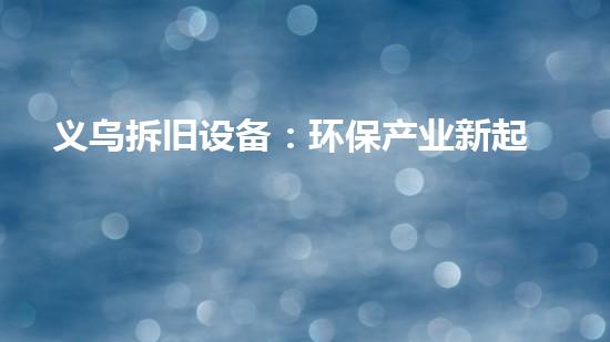 随着人们环保意识的不断提高,环保产业的未来前景变得越来越广阔。义乌的拆旧设备产业也在转型升级中逐渐涉足环保领域,拆除设备后进行资源的回收和再利用,这也将会成为未来环保产业的一个重要方向。