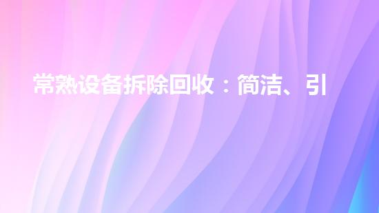 近年来,随着化工产业的发展,常熟的化工企业也在不断发展壮大。然而,设备的老旧化、功能的失效以及环保法规的要求,使得常熟的化工企业面临着设备拆除回收的需求。目前,常熟的化工厂设备拆除回收市场呈现出供大于求的状态,设备拆除回收市场竞争激烈。