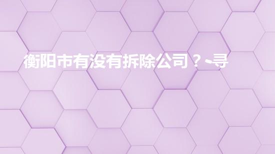 随着经济的快速发展,衡阳市各行各业都在蓬勃发展,拆除工程也是其中之一。但是,许多人对于衡阳市是否有专业拆除公司还存有疑虑。本文邀请了化工技术专家,从多个方面对该问题进行了详细深入的解析,并提出了专业的建议。
