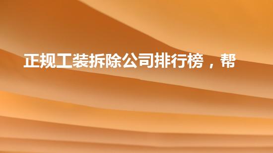 正规工装拆除公司排行榜是一份帮助人们选择可靠服务商的重要指南。在本文中,我们将从专业化、安全性、可持续性、回收、成本和客户反馈等多个方面探讨正规工装拆除公司排行榜,并为读者提供背景信息和许多实例,以便他们做出更明智的选择。