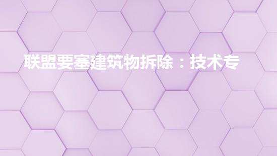 联盟要塞建筑物拆除需要采用适当的工艺流程。通常情况下,需要采用最新的可持续拆除技术,例如巴洛仕不动火水刀切割拆除技术。在拆除过程中,需要使用先进的设备和工具,例如钢铁切割器以及重型机械。在进行高空作业时,需要使用安全措施,例如支吊架或挂篮。