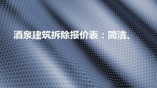 酒泉建筑拆除报价表的简洁、详实、实用性是令人欣喜的。本文旨在从拆除方案的制定、费用计算、资源回收、危险品处理、环保施工等方面,深入探讨酒泉建筑拆除报价表的多方面特点。该文章将帮助拆除行业专家更好地理解酒泉建筑拆除报价表的特点,提升拆除行业的运营效率。