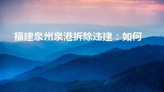 福建泉州泉港的拆除违建行动引起广泛关注。作为一个拆除行业专家,本文从四个方面论述了如何规范城市建设,包括城市规划、建筑监管、拆除技术和环保处理。文章将介绍泉港拆除违建的过程,并详细解释了如何避免再次发生类似问题。