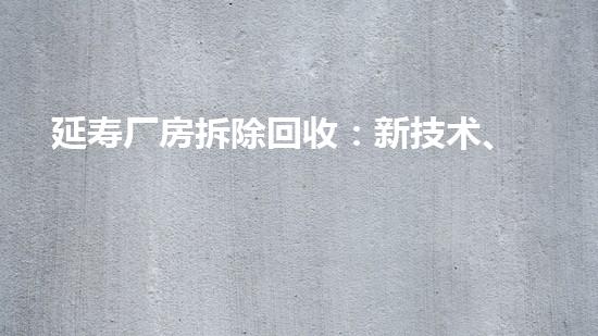 拆除回收领域的新技术、新思路和新发展都是为了实现废弃物的有效回收再利用,促进经济的可持续发展和保护环境。尤其是水刀切割技术的应用、循环经济的理念和环保施工的实践都是延寿厂房拆除回收所需发展方向。同时,强调拆除过程中的安全、节能、环保,将有助于促进拆除回收领域的发展。