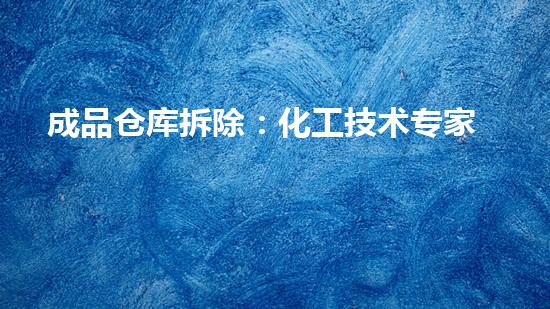 成品仓库拆除任务中,化工技术专家的工作非常重要。他们需要在拆除前对仓库设备和管道进行清洗、置换,鉴别出可回收的药品和危险废品等;他们需要对所有设备进行回收和拆卸,并把可回收的部分分离,以便进行资源再利用;同时,他们需要对废液进行分类处理,实现污泥的减量化,以及对拆除过程中产生危险物质的回收和处理;最终,他们需要在环保施工中负责环境保护工作。