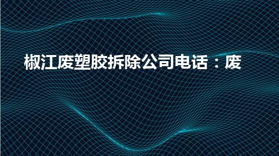 椒江废塑胶拆除公司电话号码:废塑处理尽在掌握。本文将从拆除行业专家的角度入手,对该公司的技术和服务进行详细阐述,以期为读者提供有关废塑料处理的专业知识和信息。