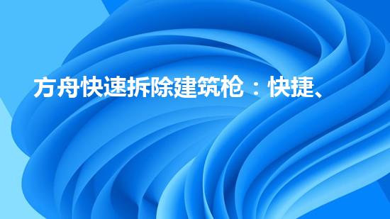 方舟快速拆除建筑枪是一种快捷、高效、安全的建筑拆除工具。本文从拆除行业专家的角度出发,深入分析了方舟建筑枪的优劣势,从技术、效率、安全、环保等方面作为切入点,详细介绍了该工具的特点和应用场景。最后,在总结文章结论的同时,提出未来方向建议。