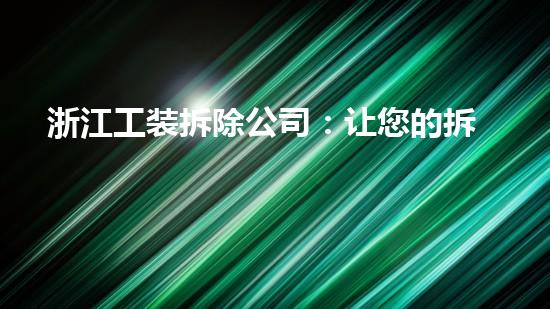 作为一家专业从事拆除工程的公司,浙江工装拆除公司可以帮助客户轻松解决任何类型的拆除工作。本文将全面介绍浙江工装拆除公司的优势,包括:团队专业化、设备先进化、工程安全化、环保可持续化、服务服务化和效率高速化。我们相信,只要选择浙江工装拆除公司,您的拆除工程就一定会变得更简单。
