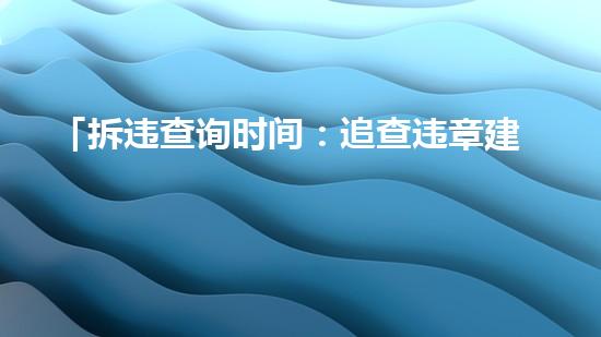 本文主要探讨拆违查询时间以及如何提升追查违章建筑的效率。在现今快速城市化进程中,违章建筑日益增多,如何快速高效的进行拆除工作已经成为当务之急。从化工专家角度出发,本文对拆除工作进行了深入分析,介绍了拆除环节中的重要过程,提出了有效建议。