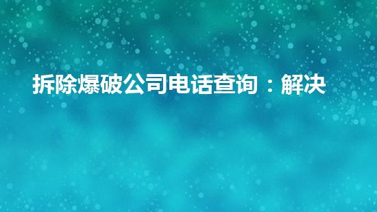 拆除爆破公司电话查询已成为解决拆迁、建筑安全等问题的必需服务。本文将从化工厂拆除、爆破技术应用、安全措施及效率提升等角度进行深入阐述,帮助读者更好地理解这一行业。