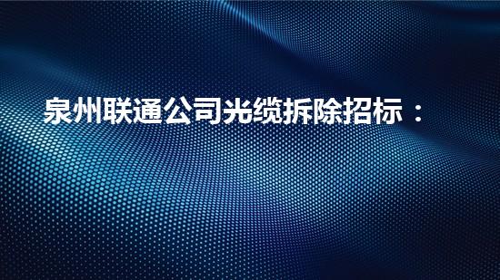 本文主要针对泉州联通公司光缆拆除招标,提供投标攻略与注意事项。在拆除行业专家的视角下,通过4-6个方面的阐述,为中标提供充分的支持与建议。