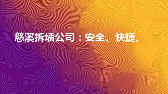慈溪拆墙公司以安全、快捷、有保障为中心,为客户提供拆除服务。本文将从专业角度,对公司的安全、效率和可靠性进行深入解析,旨在向读者展示慈溪拆墙公司的优异之处。