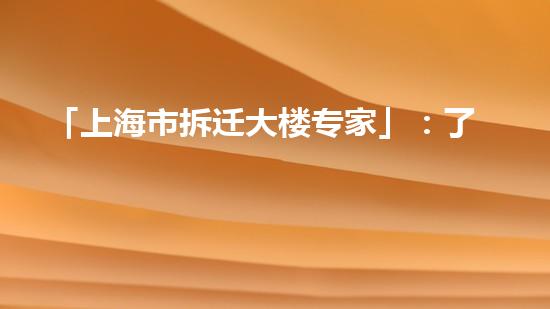 随着城市的不断发展和更新,拆迁工作成为一个常见的现象。在拆迁行业中,有一类专业人士被称为拆迁专家,而本篇文章的主题就是上海市拆迁大楼专家。这篇文章着重介绍了这个专家的角色和工作内容,希望能引起读者的兴趣和思考,同时提供一些背景信息。