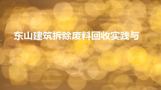 东山建筑拆除废料回收实践与挑战是当下焦点话题之一。本文通过对拆除行业的专业深入分析,探讨了东山建筑拆除废料回收的实践与挑战,以及如何解决各种挑战。文章将从多个方面进行阐述,以便广大读者全面了解该议题。