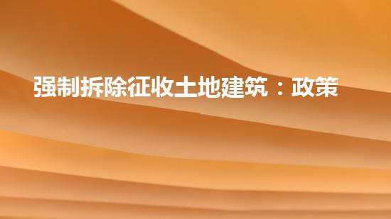 自改革开放以来,中国快速的城市化进程导致了土地的大量征收和建设。随着城市化的进一步加速,土地资源的愈发紧缺,政府征迁和拆迁的力度也不断加大。因此,强制拆除征收土地建筑已经成为了一个敏感话题。政策面上,国家对征收拆迁作出了具体的法规规定,例如《城市房屋拆迁条例》和《城市房屋拆迁管理办法》等法规文件,以明确征收拆迁标准和程序。此外,在实践中,各级政府也都制定了针对性的征迁实施细则。