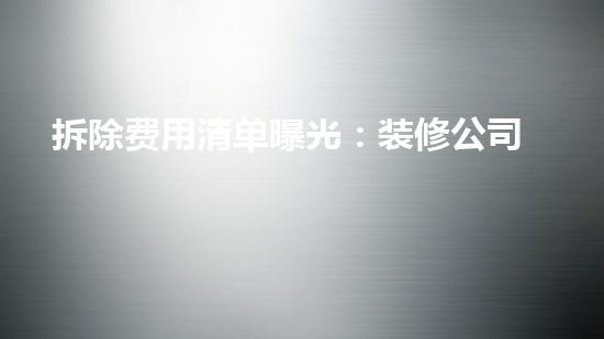 随着家庭装修需求的不断增长,装修公司也成为了现代人生活中不可或缺的一部分。然而,很多装修公司的收费项目对于消费者来说并不透明,其中拆除费用更是大多数人所不熟悉的。本文以拆除费用清单曝光为主题,从专业化的角度分析了装修公司在拆除费用方面的收费细节,并为读者提供拆除行业的专业知识和技术支持。通过本文,读者将了解到拆除费用方面的一些不为人知的细节,从而增强自身的装修知识和保护自身的权益。