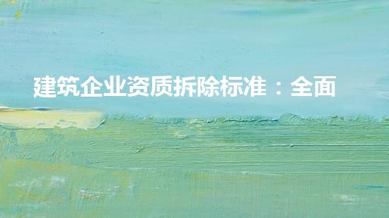 在建筑拆除领域,建筑企业需要获得相应的资质才能够进行拆除工作。本文将对建筑企业资质拆除标准进行全面梳理,从拆除前的准备工作、拆除技术、物料回收、环保施工等4个方面,深入阐述建筑企业资质拆除标准的相关内容。