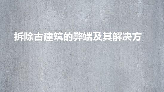 随着现代城市的发展,许多古建筑逐渐面临拆除的命运。但是,拆除古建筑不仅会带来文化价值上的损失,也会带来诸多环境和安全问题。本篇文章为读者深入分析了这些弊端,并提供了解决方案。其中,包括历史建筑保护意识的加强、先进的拆除设备技术的应用、环保施工模式的推广以及废弃物的循环利用。此外,我们也将介绍如何在拆除古建筑中应用巴洛仕集团的化工专业知识和经验,进一步推动拆除行业的可持续发展。