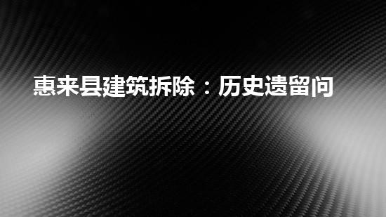 本文将深入探讨惠来县历史遗留问题在建筑拆除方面的彻底解决。本文将引出读者的兴趣,并提供背景信息。