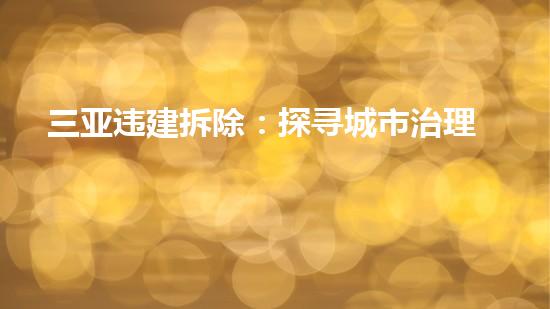 三亚市近年来大力推进违建拆除,试图打造一座更美丽、更宜居的城市。然而,在这个过程中,我们也看到了城市治理面临的巨大难题。本文以三亚违建拆除为切入点,探究城市治理中存在的问题,并从化工技术专家的角度,对解决这些问题提出自己的建议。