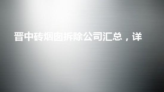 本文介绍晋中砖烟囱拆除公司汇总,详解业内拆除经验与技巧,为读者提供深入的了解和实用的指导。随着环保意识的普及,拆除行业在近年来获得了广泛的关注和发展。本文将着重介绍晋中砖烟囱拆除公司的经验和技巧,以期为读者提供有益的参考和借鉴。