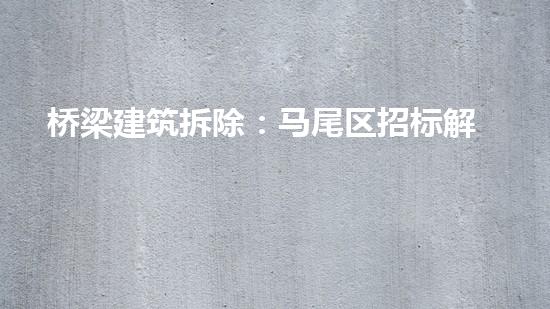 本文将着重介绍桥梁建筑拆除中的招标解析,是化工技术专家的我对于此领域有深入的研究和实践。马尾区作为福建省重要地区之一,桥梁建筑拆除需求日益增长。针对该行业现状,本文将从专业的角度出发,对桥梁建筑拆除行业的几个方面进行深度解析,以期为读者提供更全面的知识。
