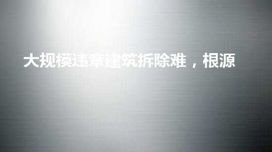 大规模违章建筑拆除难点首先在于法律政策的制定与执行。在城市建设过程中,城市规划及其配套法规不完善,而若法律政策不明确,拆迁人员的权益也无法保障,就容易导致拆除难。此外,如果没有配套的拆迁基金,也会导致拆除难度增加。要解决这一问题,就要完善相关的法律法规和政策支持,并健全相关机构的协调机制和权益保护机制。