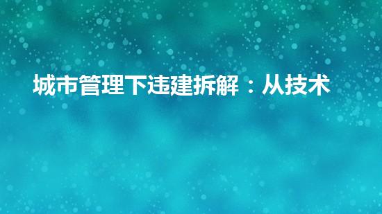 在城市管理中,违建拆除是一项十分重要的任务。从技术视角探析违建拆除工作,可以提高拆除效率和保证环保要求的实现。巴洛仕集团化工厂拆除案例表明,在实践中应用技术是十分必要的。未来需要在违建拆除工作中进一步推进技术应用,提高拆除质量和效率。