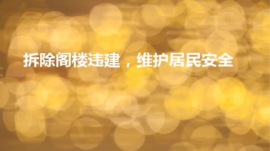 本文主要介绍如何拆除阁楼违建,维护居民安全。阁楼违建已成为当前城市中一大问题,不仅容易导致安全隐患,也影响市容。本文将从拆除行业专家的角度,深入探讨如何拆除阁楼违建。