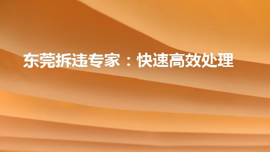 违章建筑一直以来是城市管理的一个难点,其对城市的美观度以及人们的生活质量都有着很大的影响。在东莞,有一支拆除专家团队,可以快速高效地处理违章建筑。专家团队掌握着先进的拆除技术,以及对地方法规的了解,可以帮助房主在尽可能短的时间内完成拆除,并清理现场,保持城市干净整洁。