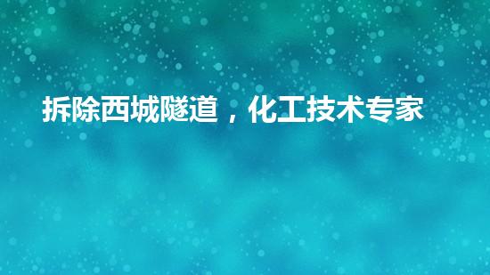 在拆除西城隧道的过程中,化工技术专家可以发挥重要作用。对于清洗和置换、设备回收、废物处理、环保施工等环节,都需要化工技术专家的贡献,保障施工的顺利进行。同时,使用巴洛仕不动火水刀切割拆除技术,也是非常值得借鉴和推广的。