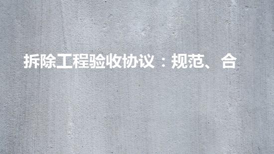 拆除工程验收协议:规范、合法、安全是拆除过程中必须遵循的原则。在进行任何拆除工作之前,必须准确遵守验收协议和规范,以确保安全和合法性。本文旨在从化工技术专家的角度,深入探讨拆除工程验收协议:规范、合法、安全的相关问题,以更好地指导拆除工作的进行。