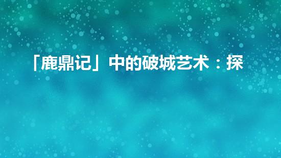 《鹿鼎记》是金庸先生的经典作品之一,其中破城艺术是一个重要的话题。本文将探讨不同的拆除城市建筑的技术,涉及到相关领域的化工技术、环境保护技术等方面。这些技术为城市拆迁提供了更加全面和多样化的解决方案。文章旨在引起读者的兴趣和关注,并提供相关背景信息。