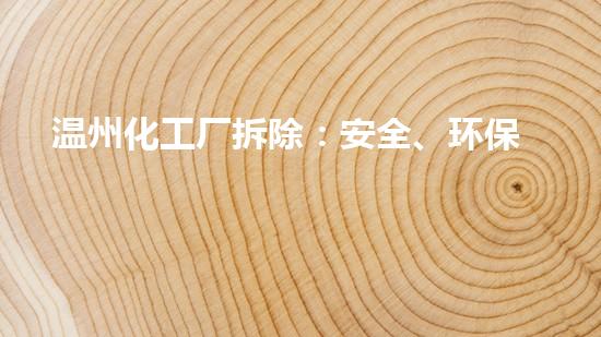 温州化工厂拆除:安全、环保与都市更新的系统工程