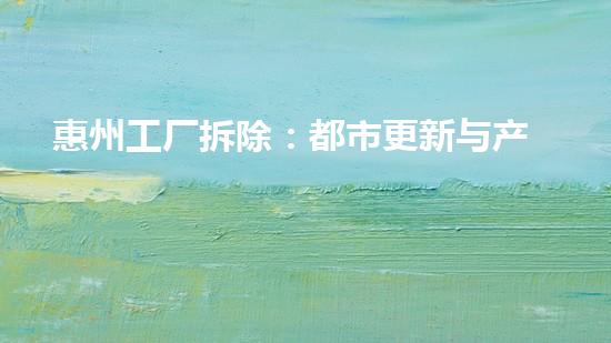 惠州工厂拆除:都市更新与产业升级的根本