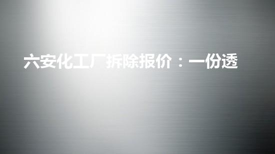 六安化工厂拆除报价:一份透明、与责任交织的成本清单