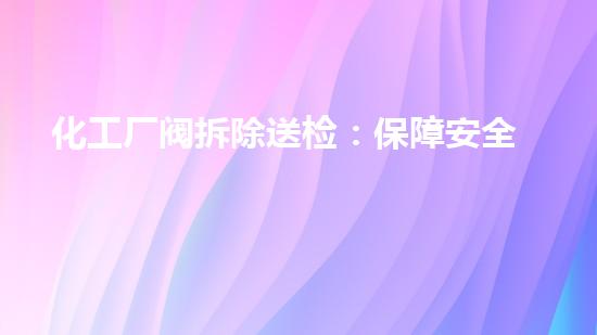 化工厂阀拆除送检:保障安全生产的根本与资深实践