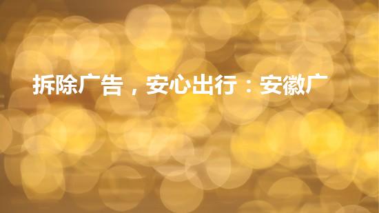 摘要广告在城市中随处可见,给行人和司机带来了困扰和危险。为了解决这一问题,安徽广告拆除公司成立。本文通过对安徽广告拆除公司进行深入的研究,讨论了拆除广告如何助于安心出行的重要性。正文1. 专业化的拆除...