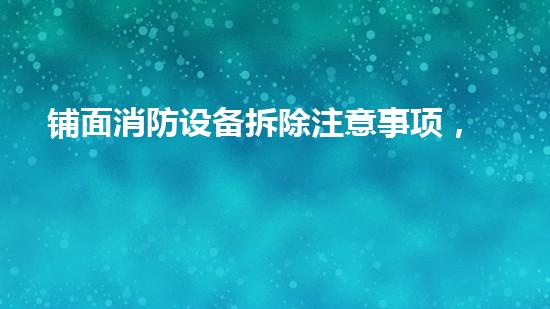 在拆除铺面消防设备时,需要考虑它与其他设备的关系。例如,像消防栓、火灾自动报警系统这样的设备,需要与其他建筑物设施融为一体,因此在拆除时需要先进行周密的计划。施工人员需要确认消防设备与其他设备的接口位置和开关,防止误操作导致其他设备受到损坏。