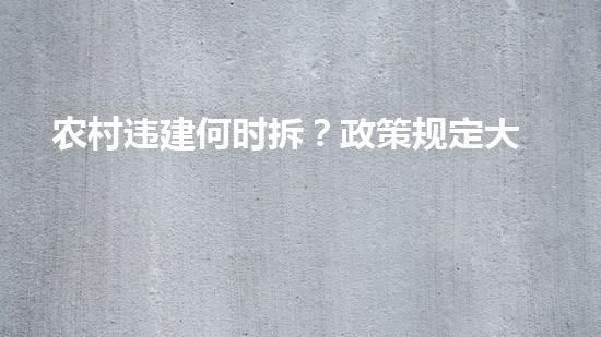 农村违建的拆除是当前社会环保问题的重要组成部分,其背后涉及到政策、法规等多个方面的因素。在这篇文章中,我们将会从拆除行业专家的角度,详细阐述农村违建何时拆的政策规定,包括土地使用权、建设规划、施工标准等多个方面,以期为农村违建拆除工作提供帮助。