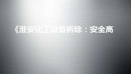 摘要:随着经济的发展,化工行业得到快速发展,但化工设备在使用过程中也逐渐老化,需要进行拆除与更新。本文章以《淮安化工设备拆除:安全高效实施方案》为中心,从4-6个方面深入详细地分析介绍方案的内容。正文...