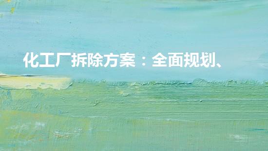 摘要:本文主要介绍化工厂拆除方案:全面规划、高效实施,通过巴洛仕集团的实际操作案例,展示水刀不动火拆除技术的应用,油罐拆除,化工厂拆除,设备回收,危废处理以及土壤修复解决方案,从而实现全面规划,高效实...