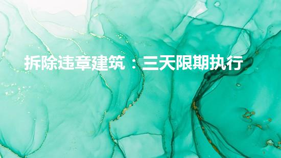 摘要:本文主要介绍了拆除违章建筑:三天限期执行的专业知识。在现代城市化建设中,违章建筑问题日益突出。对于这些问题,采取强制拆除是必要的行动。拆除违章建筑需要专业知识和经验,以避免对环境和居民造成更大的...