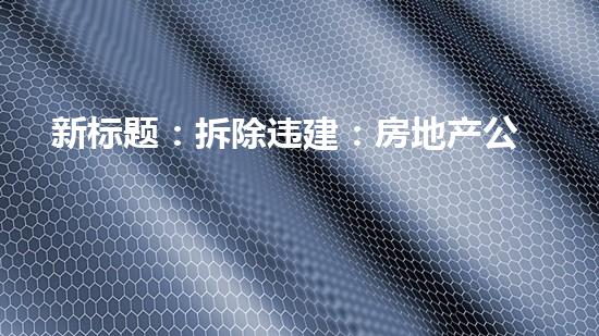 摘要:违建拆除一直是一个重要的环保工作。近年来,随着环保意识的提高,各大房地产开发商日益重视违建拆除工作。本文以“拆除违建:房地产公司的重要任务”为主题,从专业角度探讨了房地产公司在违建拆除中的思路、...