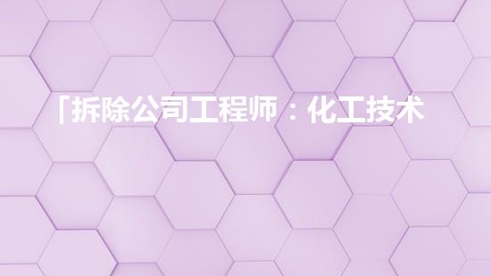 摘要:《拆除公司工程师:化工技术专家的工作日志》是一本关于拆除行业的经验分享和技术分析的书籍。本文从化工技术专家的角度出发,从多个方面探讨这本书对于拆除行业的贡献和重要性。其中重点涉及到拆除前的清洗置...
