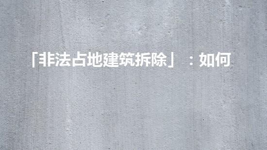 「非法占地建筑拆除」:如何重拾城市的秩序?