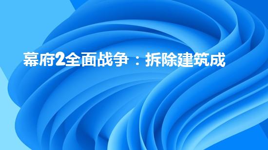 幕府2全面战争中,拆除建筑成为全面战略的关键。本文从拆除行业专家的角度出发,探讨该战略的必要性和实现方法,从多个角度进行深入剖析。