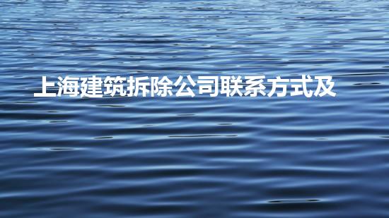 上海建筑拆除公司可以通过以下方式联系:电话、电子邮件、传真、邮寄或面谈。它们的电话号码和电子邮件地址通常可以在其网站上找到。如果您想与他们面谈,或者需要他们派员到您的现场考察,您也可以联系他们的办公室或服务部门。