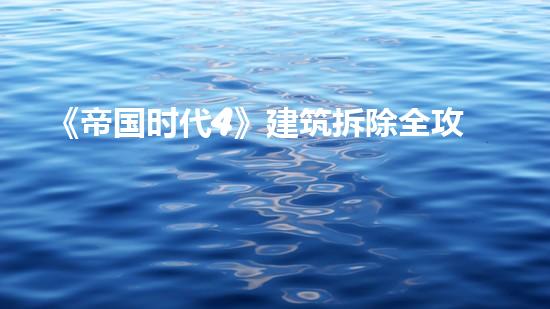 《帝国时代4》是一款备受玩家喜爱的战略游戏,建筑拆除是游戏中常见的操作。本文将从化工专家的角度,为读者提供一份详尽的建筑拆除攻略,介绍如何高效、科学地拆除建筑,为游戏爱好者带来更好的游戏体验。