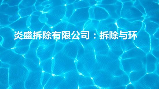 炎盛拆除有限公司是一家以拆除和环保并行为中心的公司,为社会经济的可持续发展和环保事业的推进发挥了巨大的作用。本文围绕炎盛公司的拆除和环保工作,从不同的角度进行深入专业的阐述,旨在让读者深入了解炎盛公司的工作,以及拆除行业的发展趋势。